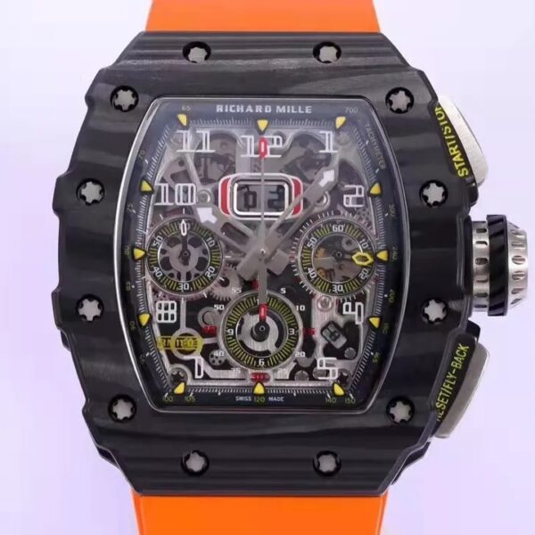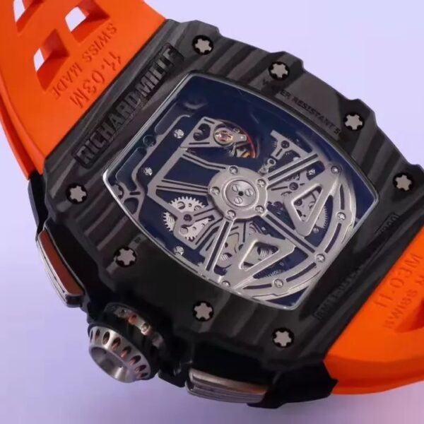 RM 11-03 Skeleton Dial Black Bezel Orange Rubber Strap KV 7750