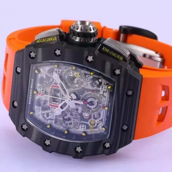 Be the first to review “RM 11-03 Skeleton Dial Black Bezel Orange Rubber Strap KV 7750”