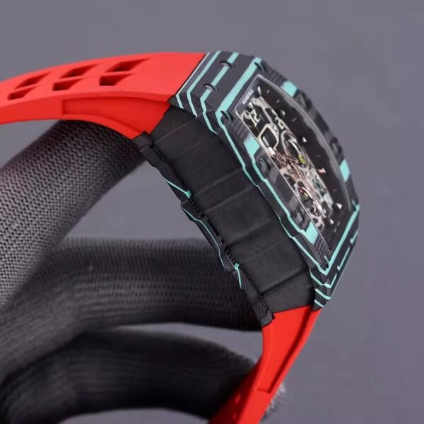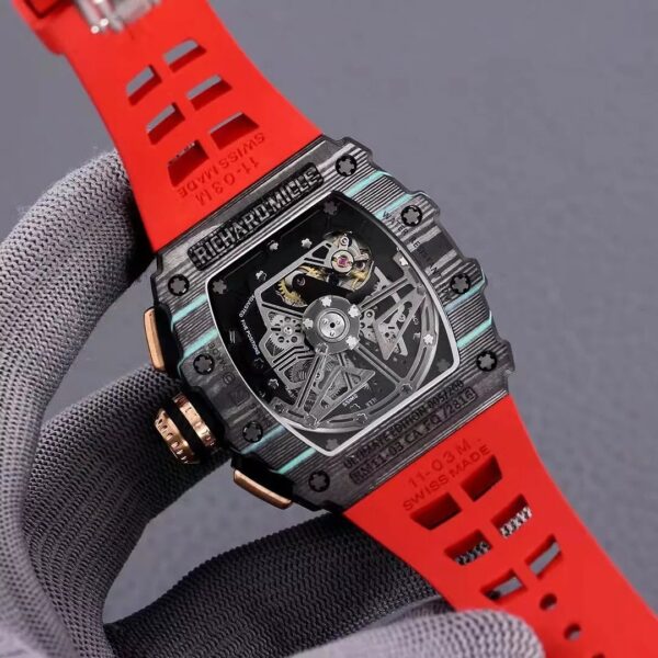 RM 11-03 Skeleton Dial Black&Blue Bezel Red/White/Black Rubber Strap KV 7750