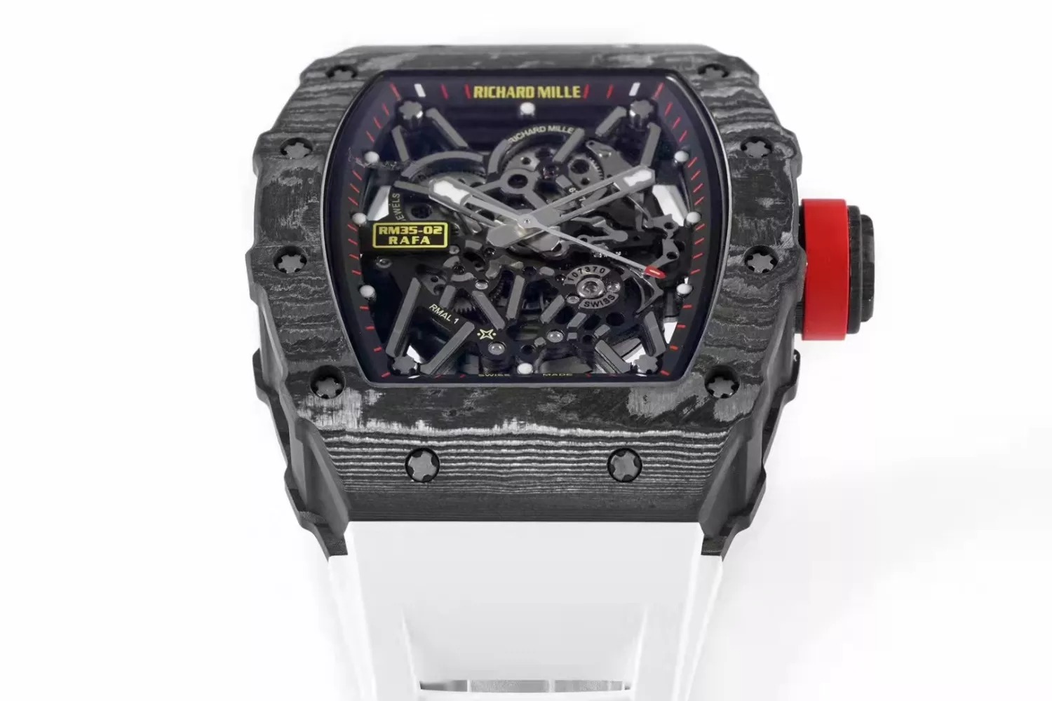 RM 35-02 Black Bezel Red Markers White Rubber Strap ZF RUML3