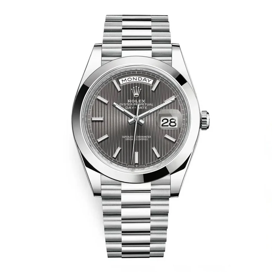 Rolex Day-Date 40 Dark rhodium dial, Smooth Bezel, President bracelet, Watch 228206-0011