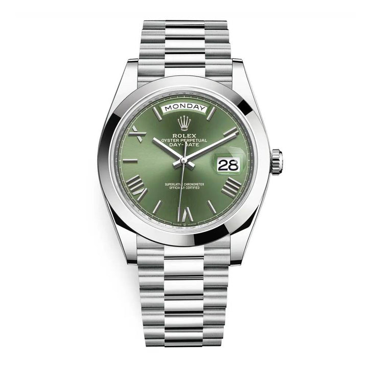 Rolex Day-Date 40 Olive green dial, Smooth Bezel, President bracelet, Watch 228206-0027
