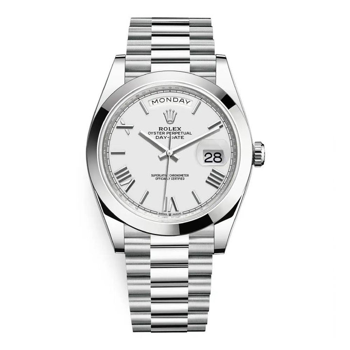 Rolex Day-Date 40 White dial, Smooth Bezel, President bracelet, Watch 228206-0028
