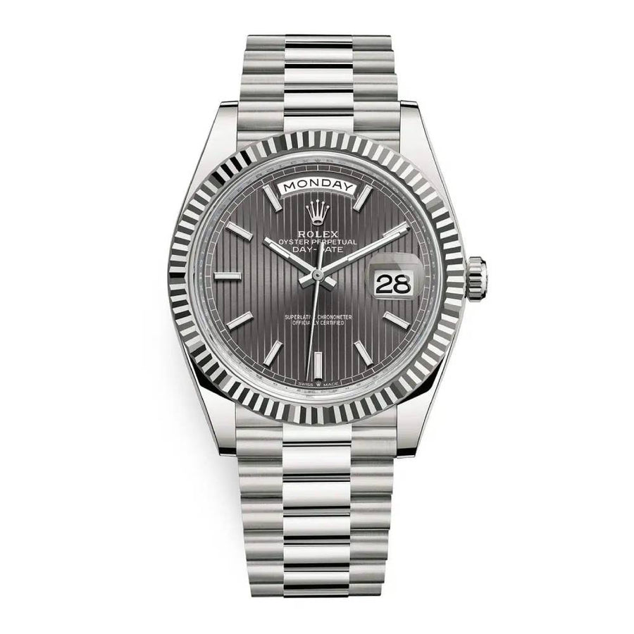 Rolex Day-Date 40 Dark Rhodium dial, Fluted Bezel, President bracelet, White gold Watch 228239-0002